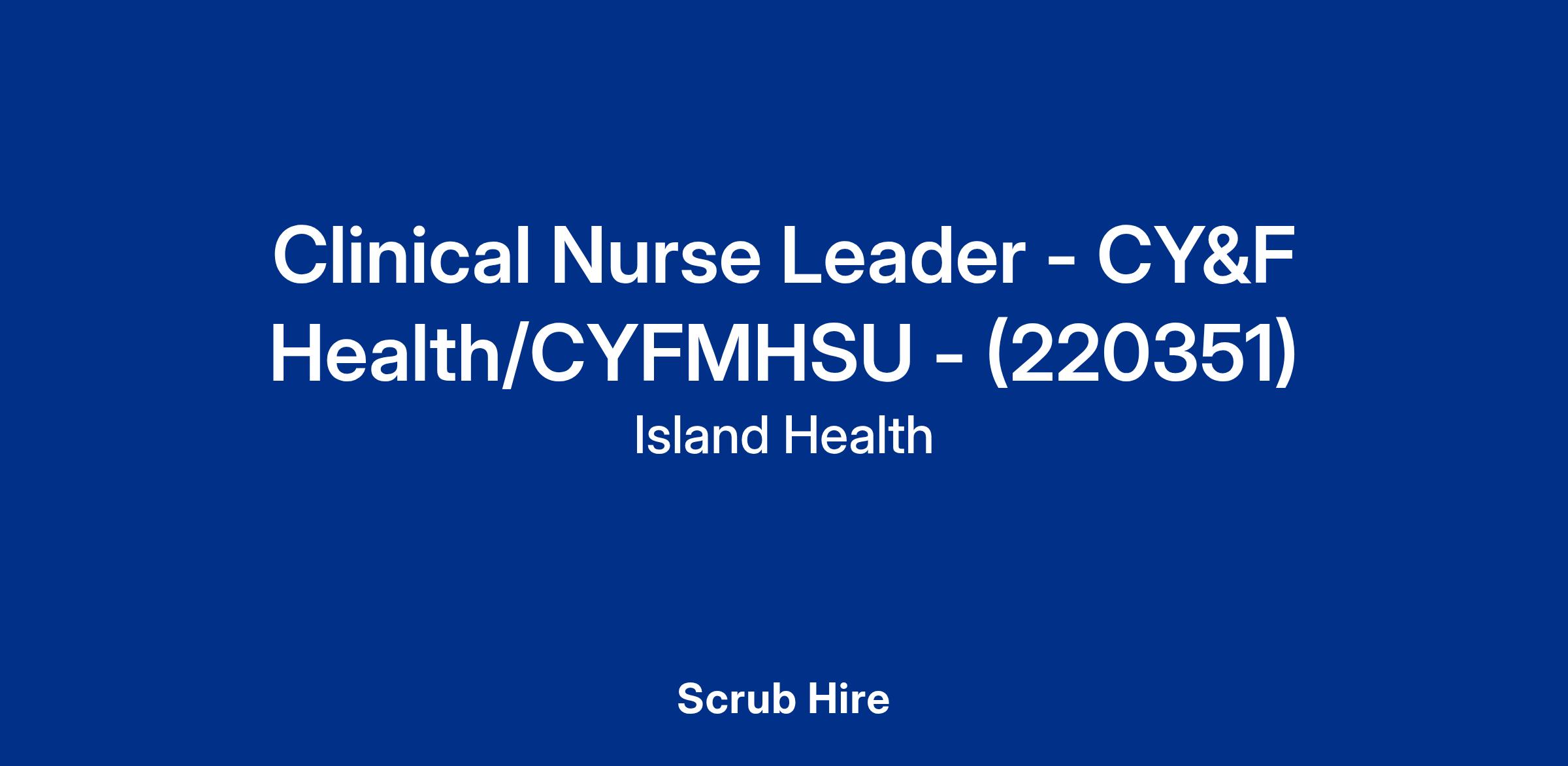 Working in a community setting, the Public Health/CYFMHSU Clinical Nurse Leader provides leadership in the day-to-day operations of an assigned unit/service area, and participates in developing, implementing and evaluating CYFMHSU/Public Health programs/services. Utilizing knowledge and clinical expertise in the assigned clinical area, functions as a clinical resource providing consultation and in-service to nurses, physicians, other program teams, community nurses, and other health care team staff regarding the care and treatment of clients/residents within the specialty area. Supervises staff and assigns work as required. Provides leadership and functions as a role model and coach to assist staff with professional development and achievement of unit/service goals. Contributes to the monitoring and development of the operating plan. Provides leadership within the unit/service for quality and risk management activities. Travels to other sites throughout the VIHA and other health care provider sites as required. Provides direct client care, teaching and problem solving.