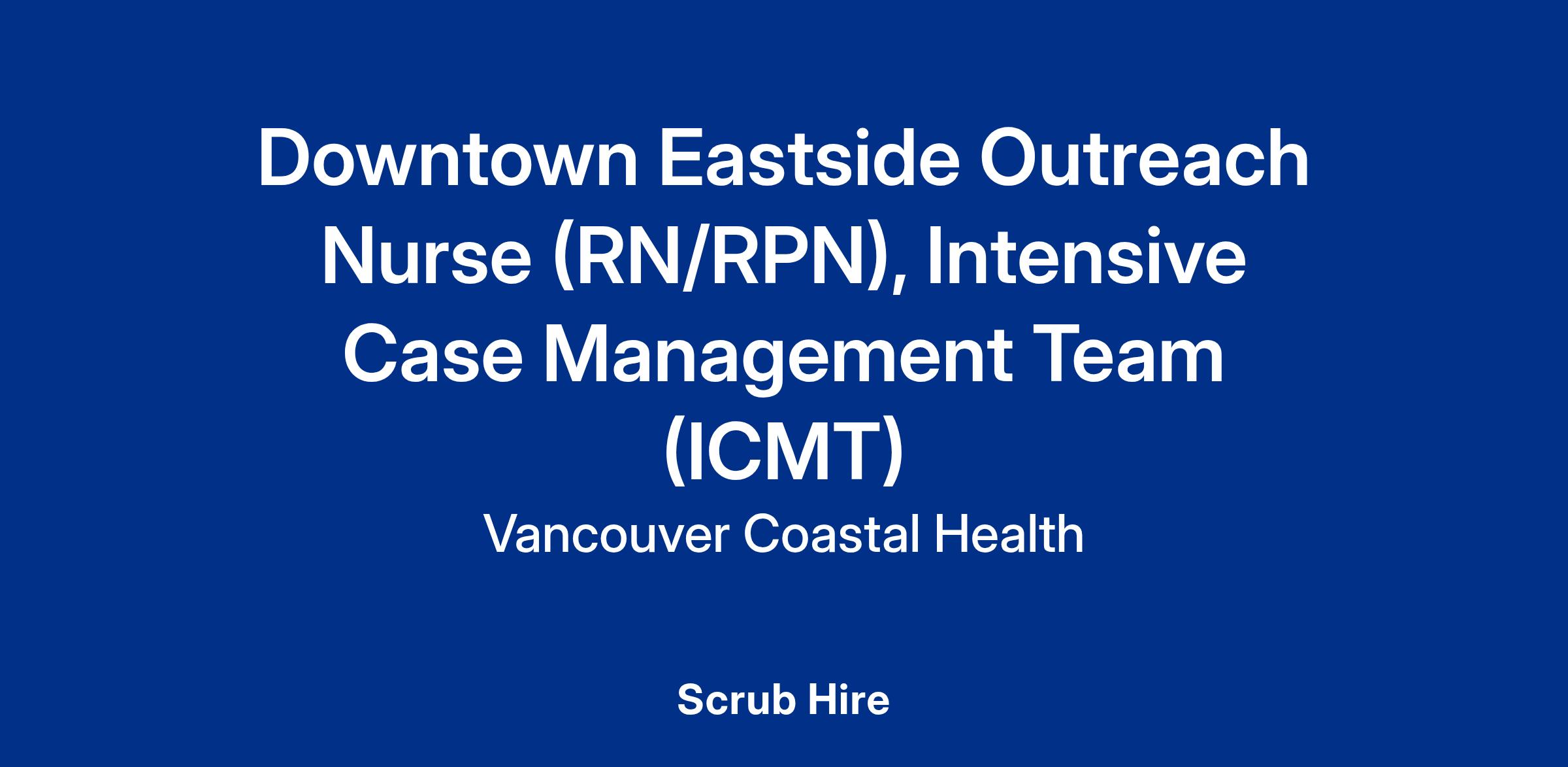 Vancouver Coastal Health is looking for a Mental Health and Addictions Outreach Nurse (RN/RPN) to join the Intensive Case Management Team working out of Heatley Community Health Centre in the Vancouver Downtown Eastside.