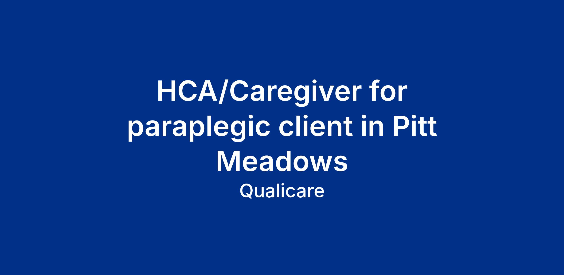 The HCA/Caregiver provides personal care services under the supervision of the Care Coordinator to meet individual client needs. Caregivers must be skilled in lift and transfer techniques. Experience with paraplegic clients is an asset but not required. Duties may include specialized personal care such as digital stimulation and suppository administration.