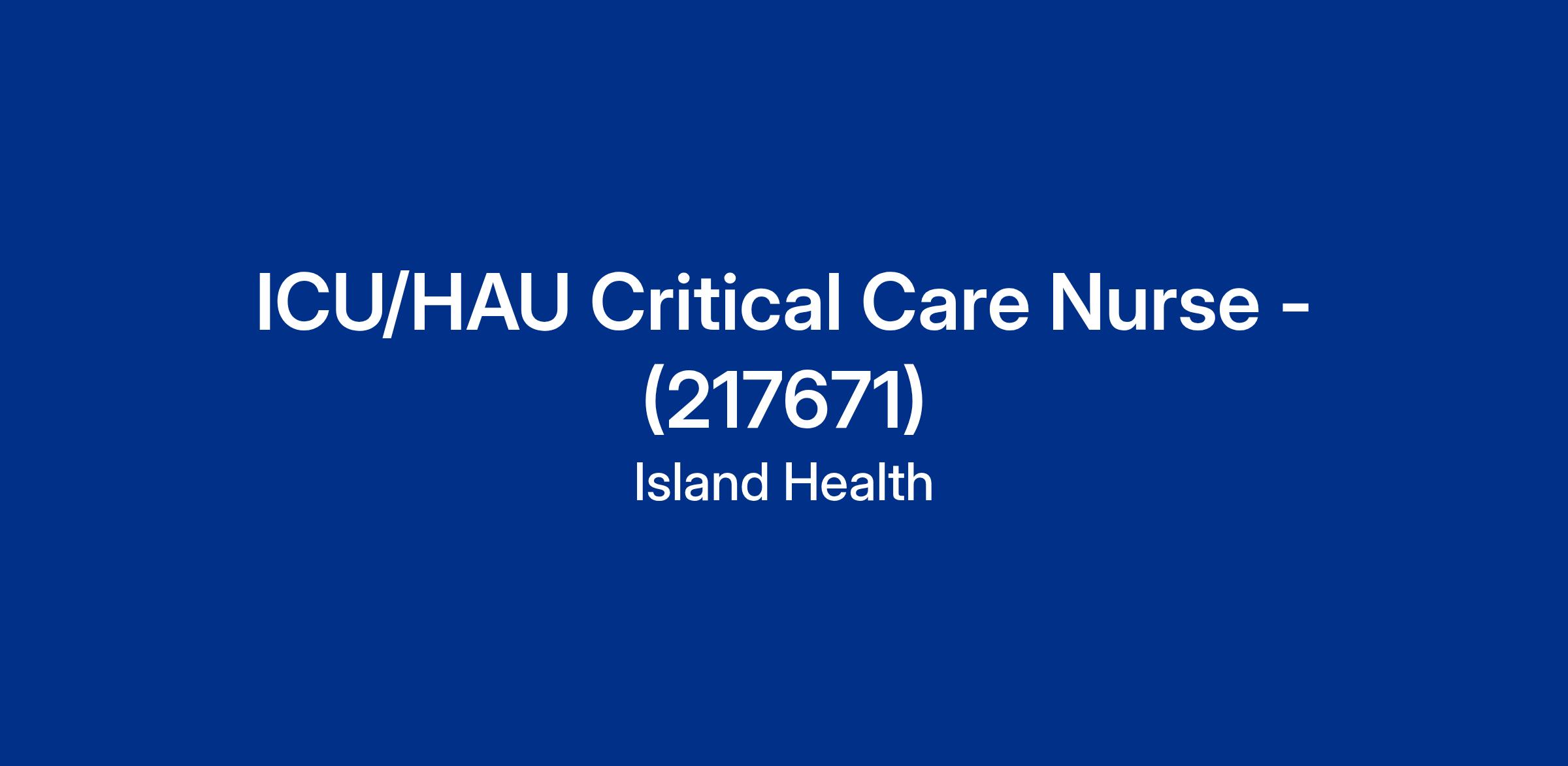 ICU/HAU Critical Care Nurse - (217671)