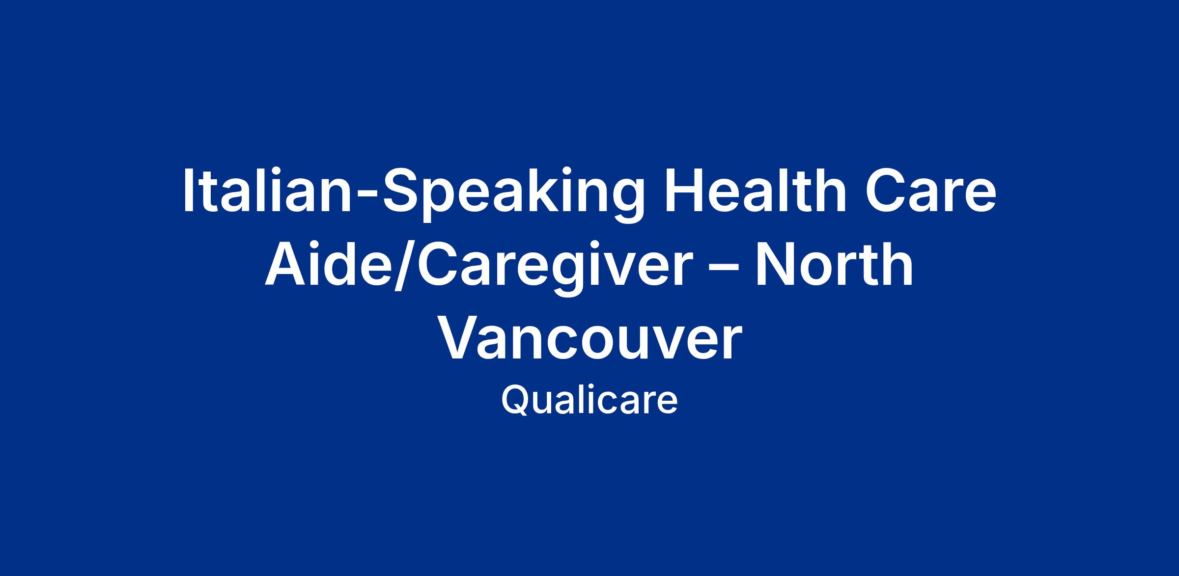Qualicare Homecare BC is seeking a compassionate Italian-speaking Health Care Aide / Caregiver to support a client in North Vancouver (or someone willing to commute). The client is being discharged from hospital and requires personal care and companionship, as family support is limited.
