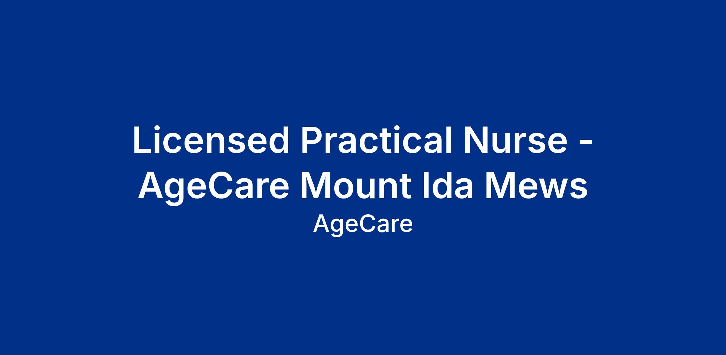 Work Location: AgeCare Mount Ida Mews