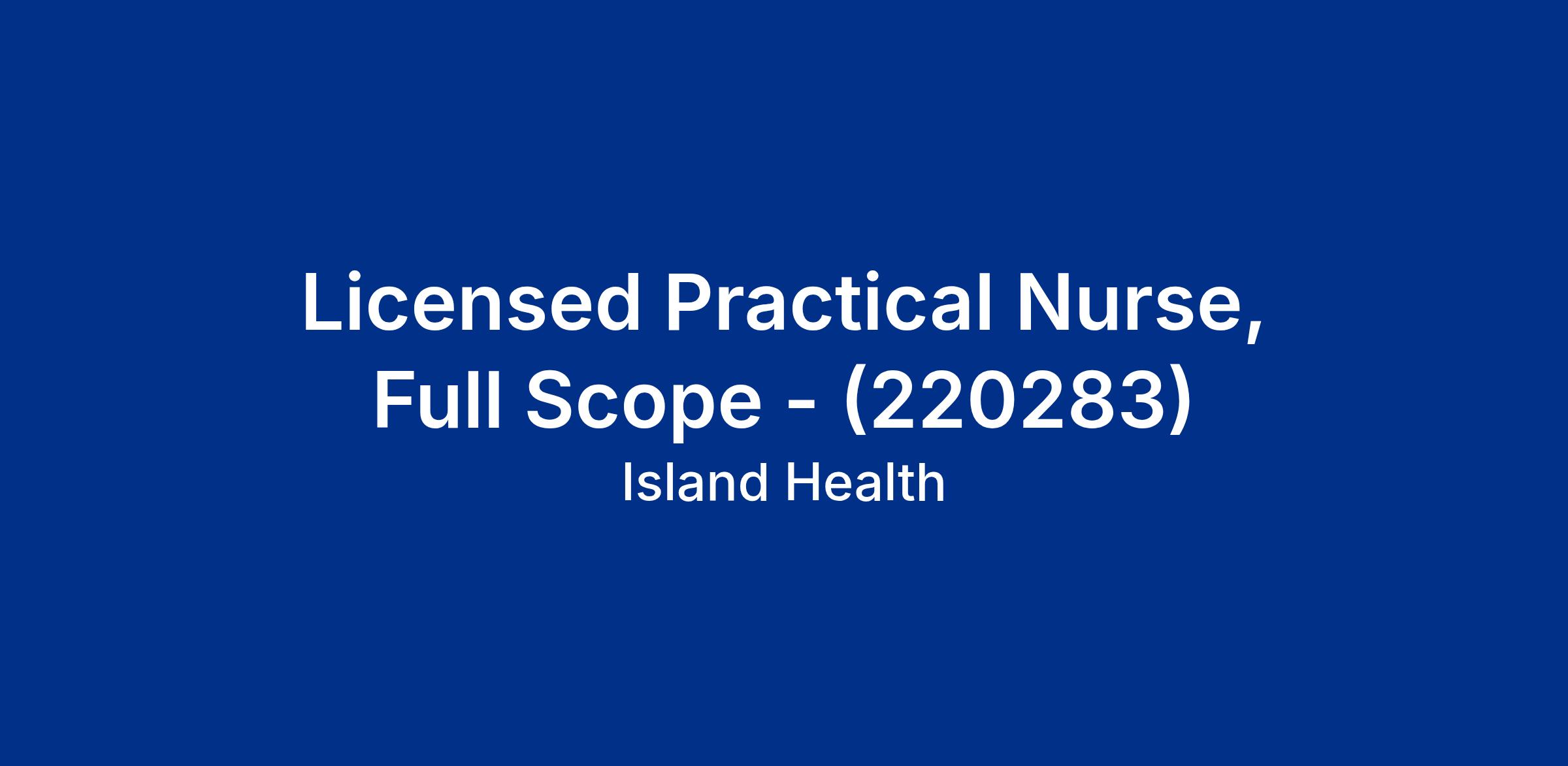 Under the direction of the Manager or designate and in collaboration as a member of a multidisciplinary team, the Licensed Practical Nurse, Full Scope performs assessments, plans and provides personal care, and performs nursing procedures. The Licensed Practical Nurse, Full Scope operates in accordance with the competency guidelines and full scope of practice within the Standards of Practice as outlined by the BC College of Nurses and Midwives, and according to agency operating policies and standards and unit specific protocols.