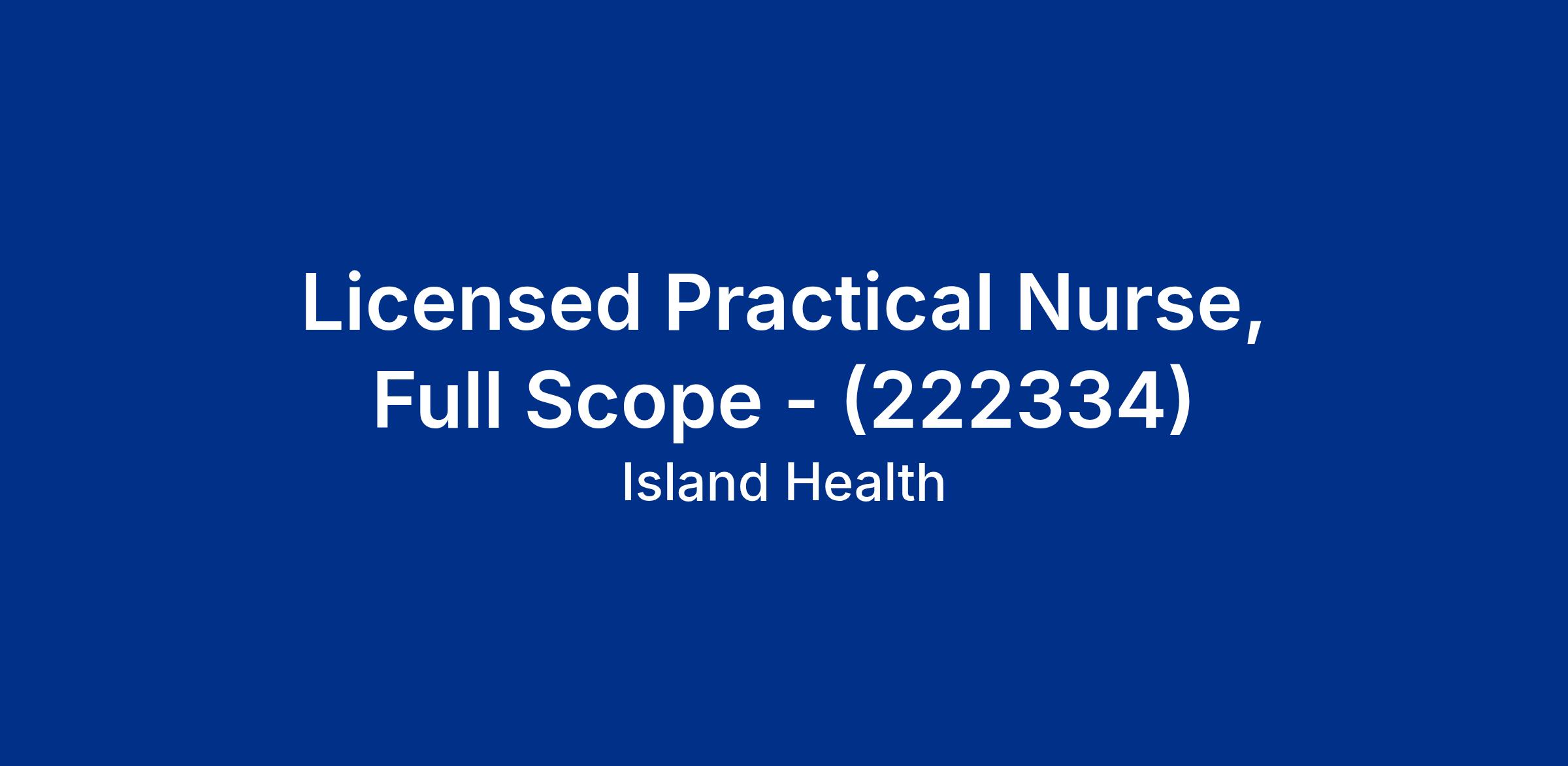 Under the direction of the Manager or designate and in collaboration as a member of a multidisciplinary team, the Licensed Practical Nurse, Full Scope performs assessments, plans and provides personal care, and performs nursing procedures. The Licensed Practical Nurse, Full Scope operates in accordance with the competency guidelines and full scope of practice within the Standards of Practice as outlined by the BC College of Nurses and Midwives, and according to agency operating policies and standards and unit specific protocols.