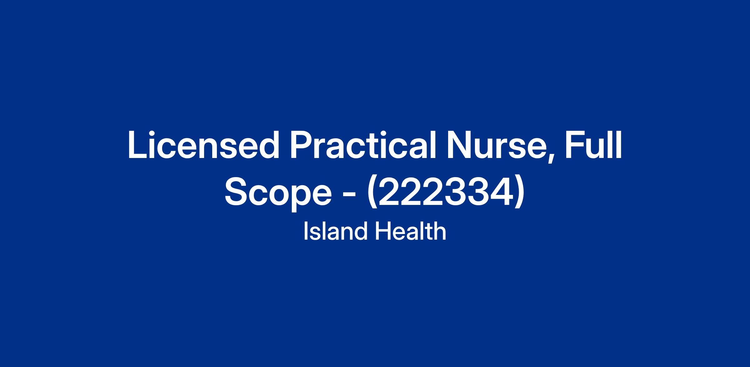 Under the direction of the Manager or designate and in collaboration as a member of a multidisciplinary team, the Licensed Practical Nurse, Full Scope performs assessments, plans and provides personal care, and performs nursing procedures. The Licensed Practical Nurse, Full Scope operates in accordance with the competency guidelines and full scope of practice within the Standards of Practice as outlined by the BC College of Nurses and Midwives, and according to agency operating policies and standards and unit specific protocols.