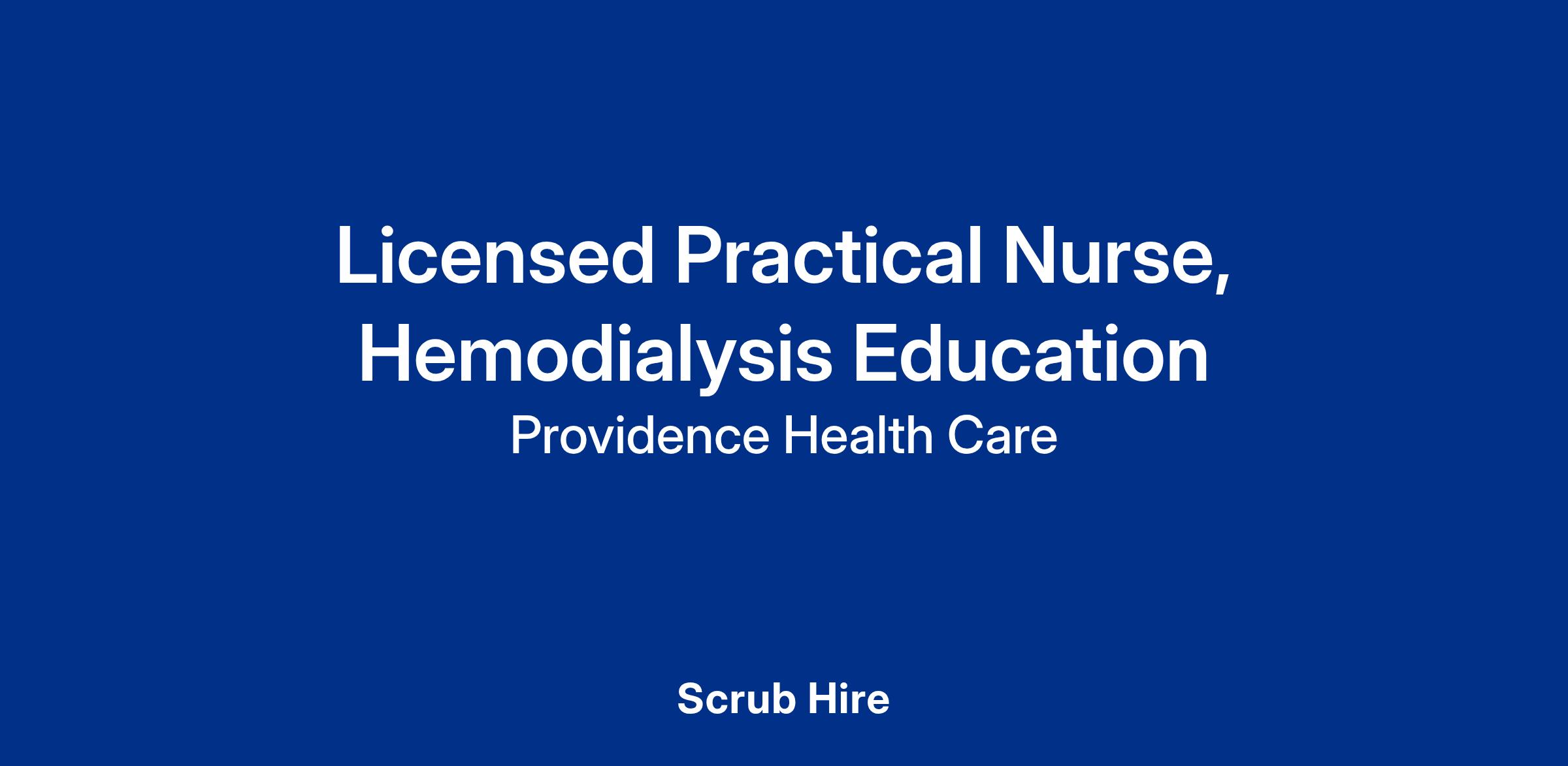 The Licensed Practical Nurse (LPN) in the Hemodialysis Unit delivers practical nursing care as part of an integrated nephrology team. Reporting to the Patient Care Manager, the LPN independently performs complex renal interventions, including pre-, during, and post-dialysis activities, while collaborating with RNs/RPNs and the healthcare team to ensure safe, effective patient care. This role supports patients and families in line with professional standards and Providence Health Care’s values.