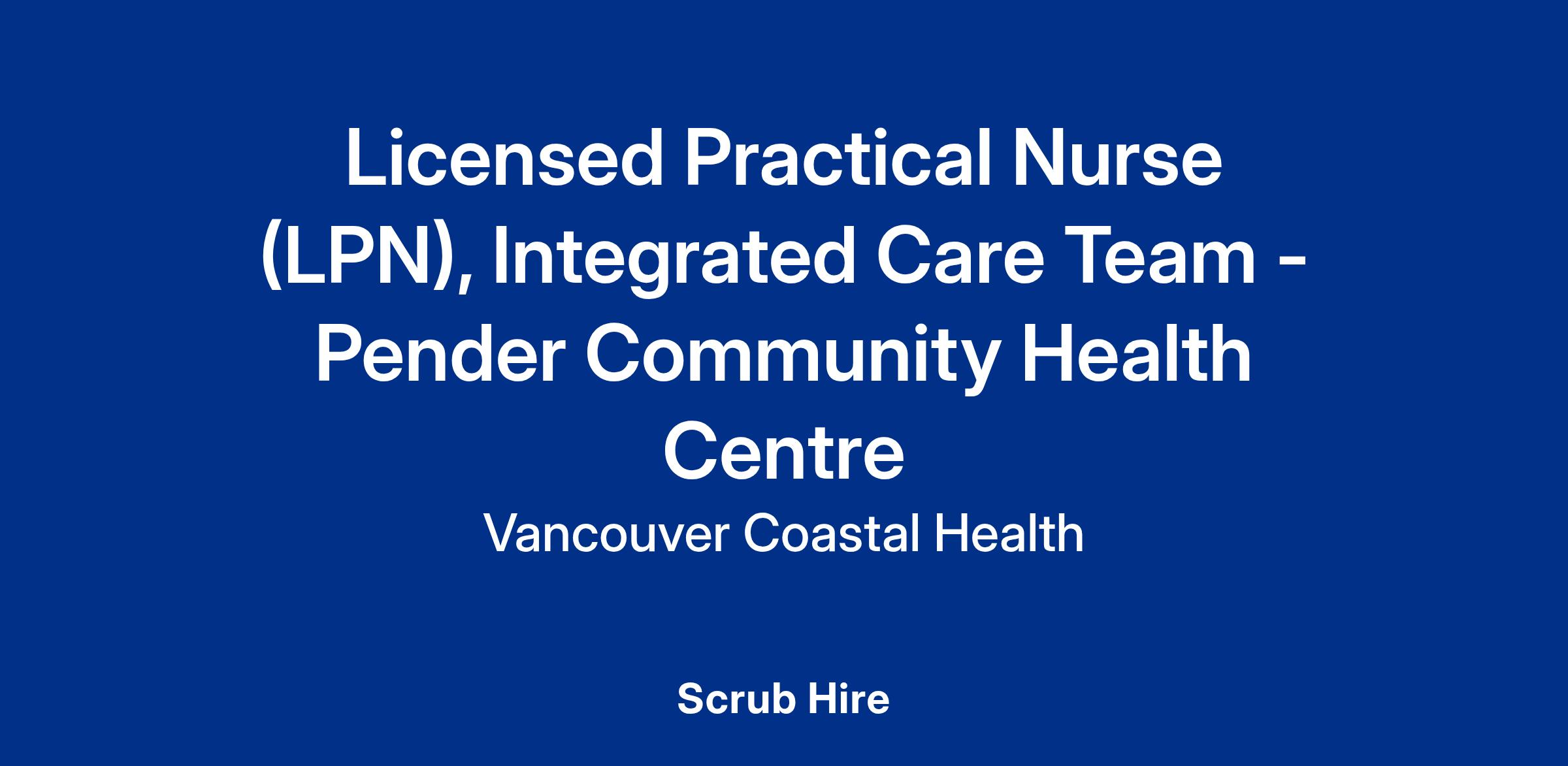 Vancouver Coastal Health is looking for a Licensed Practical Nurse (LPN) to join the Integrated Care team at Pender Community Health Centre in Vancouver, BC. Apply today to join our team!
