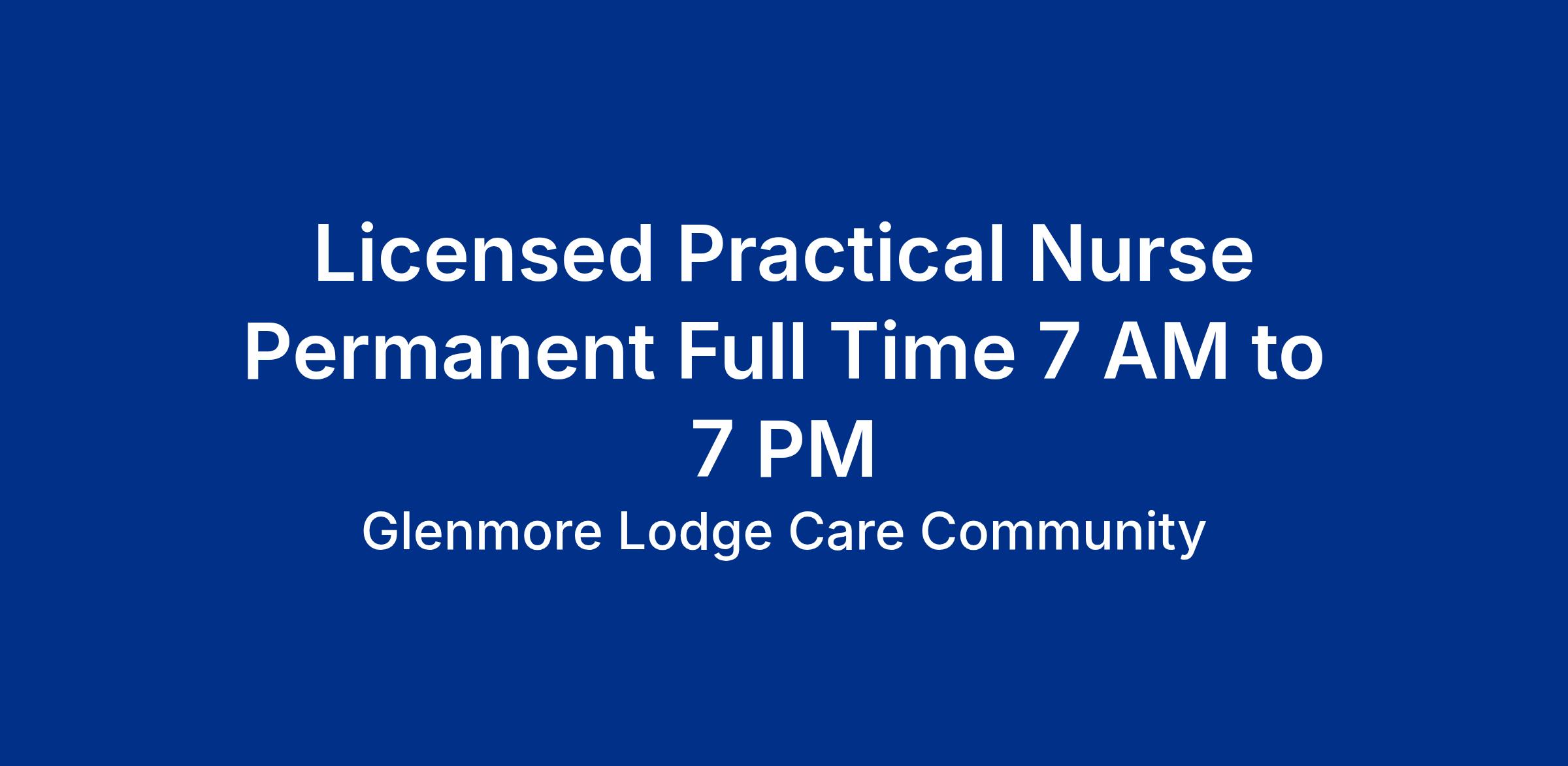 Licensed Practical Nurse Permanent Full Time 7 AM to 7 PM