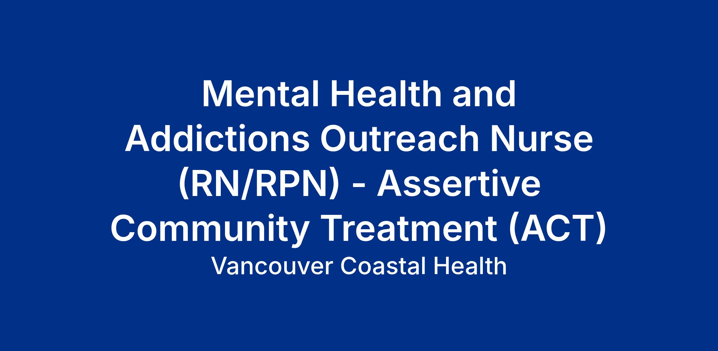 Vancouver Coastal Health is looking for a Mental Health and Addiction Outreach Nurse (RN/RPN) to join the Assertive Community Treatment Team (ACT) in Vancouver, BC. Apply today to join our team!