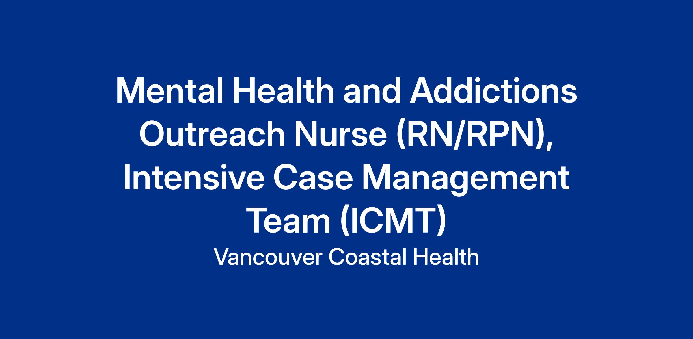 Mental Health and Addictions Outreach Nurse (RN/RPN), Intensive Case Management Team (ICMT)