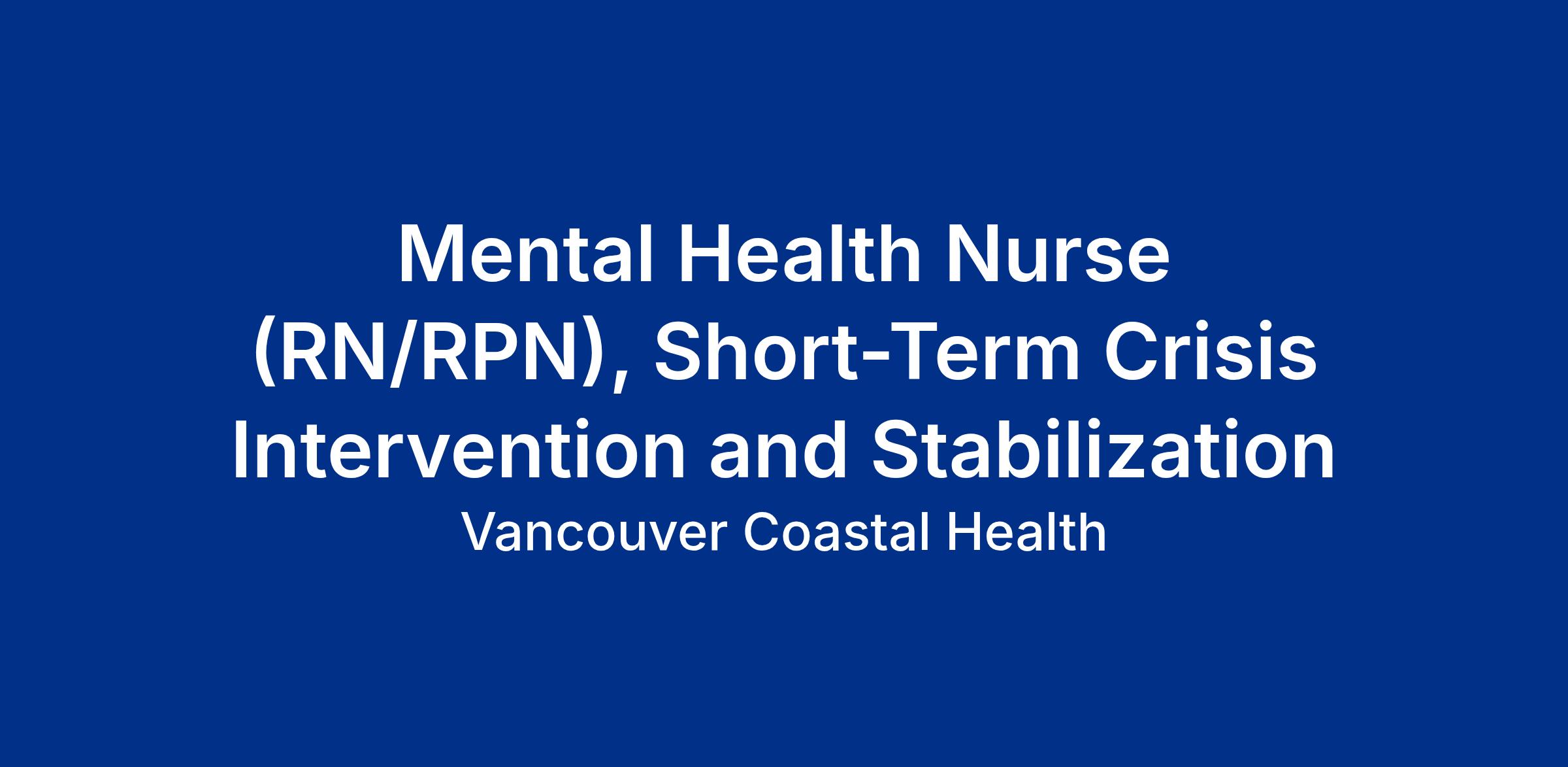 Come work as a Mental Health Nurse with Vancouver Coastal Health (VCH)!