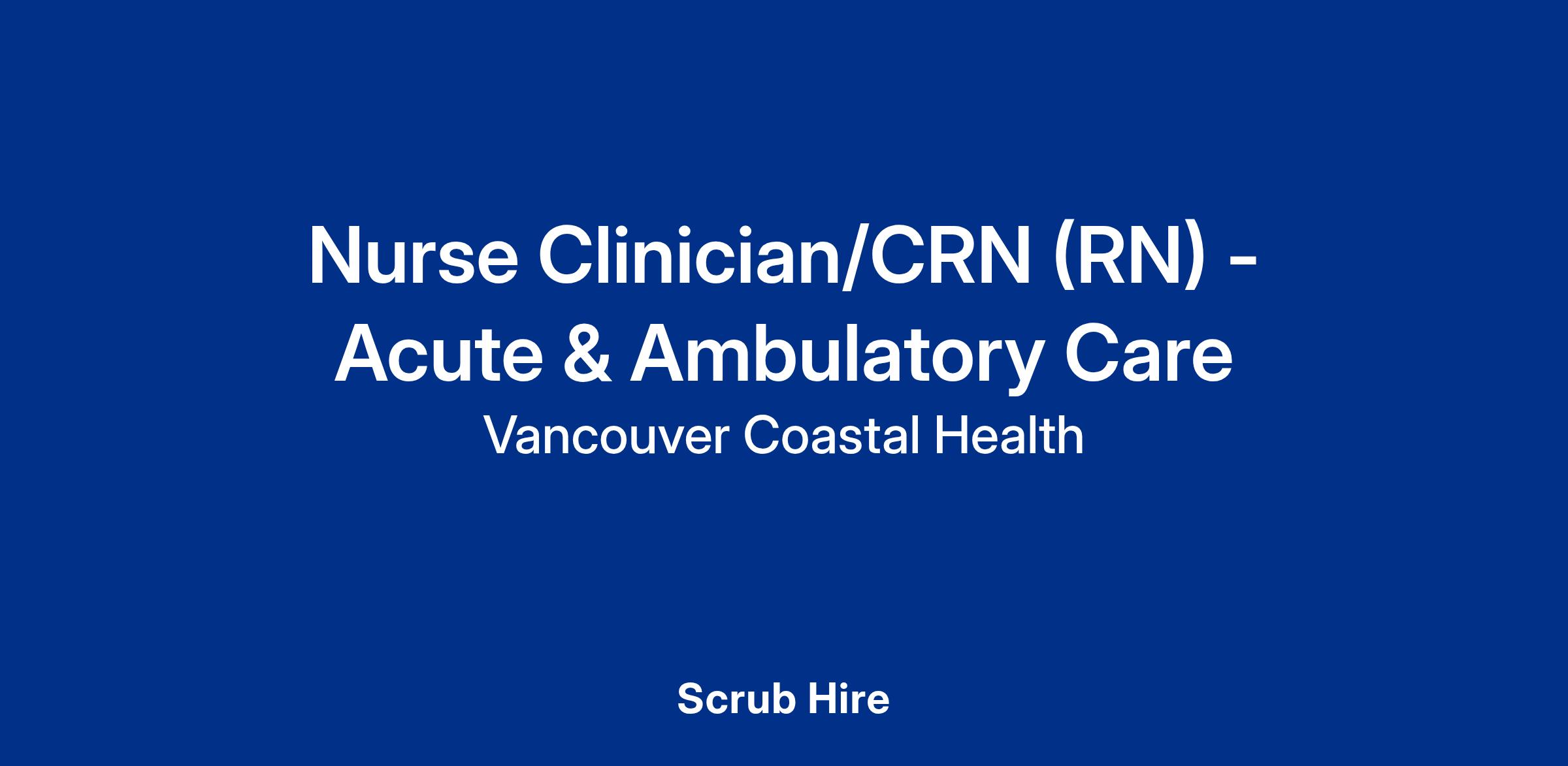Come work as a Nurse Clinician/CRN with Vancouver Coastal Health (VCH). Apply today to speak to a Talent Acquisition Advisor! Relocation Assistance may also be available.