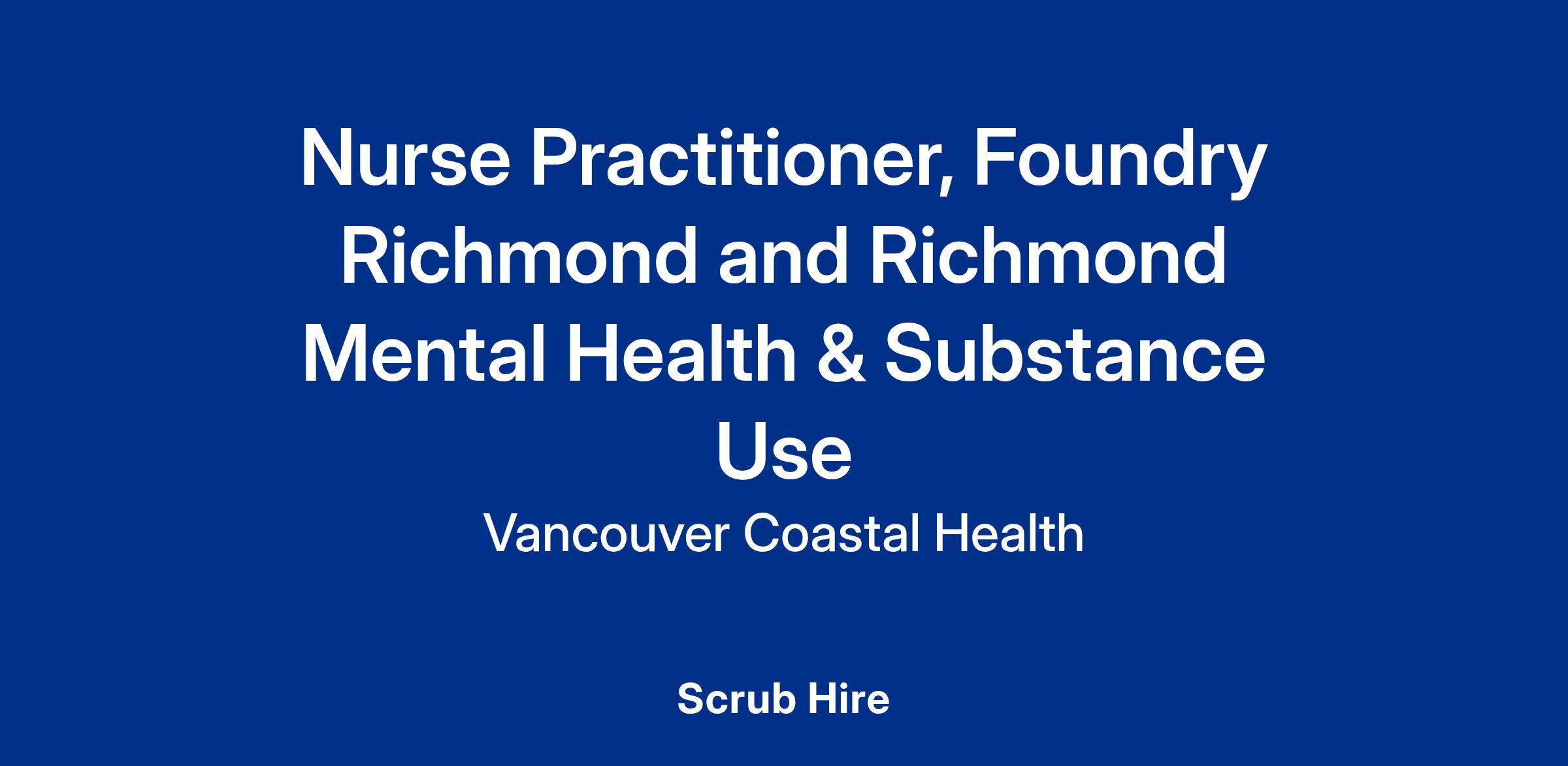 Foundry is a province-wide network of integrated health and social service centres for young people ages 12-24, providing a one-stop-shop for young people to access mental health care, substance use services, primary care, social services and youth and family peer supports. The Nurse Practitioner in this role will provide full scope primary care to patients seeking care at the Foundry. NPs working at the Foundry in Richmond will be medical providers who are trauma informed and engaged in team-based care with the focus on youth primary care needs, mental health and substance use, sexual health, and gender affirming care. NPs applying on this position are encouraged to have specialty training in Addiction Medicine from the BCCSU Provincial Opioid Agonist Treatment Support Program and can be supported for those new to this practice.