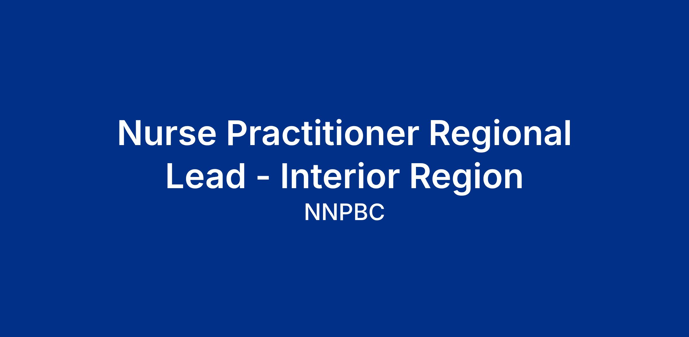 We are seeking a Nurse Practitioner Regional Lead – Interior Region to support the advancement of Ministry of Health-funded initiatives delivered through NNPBC.