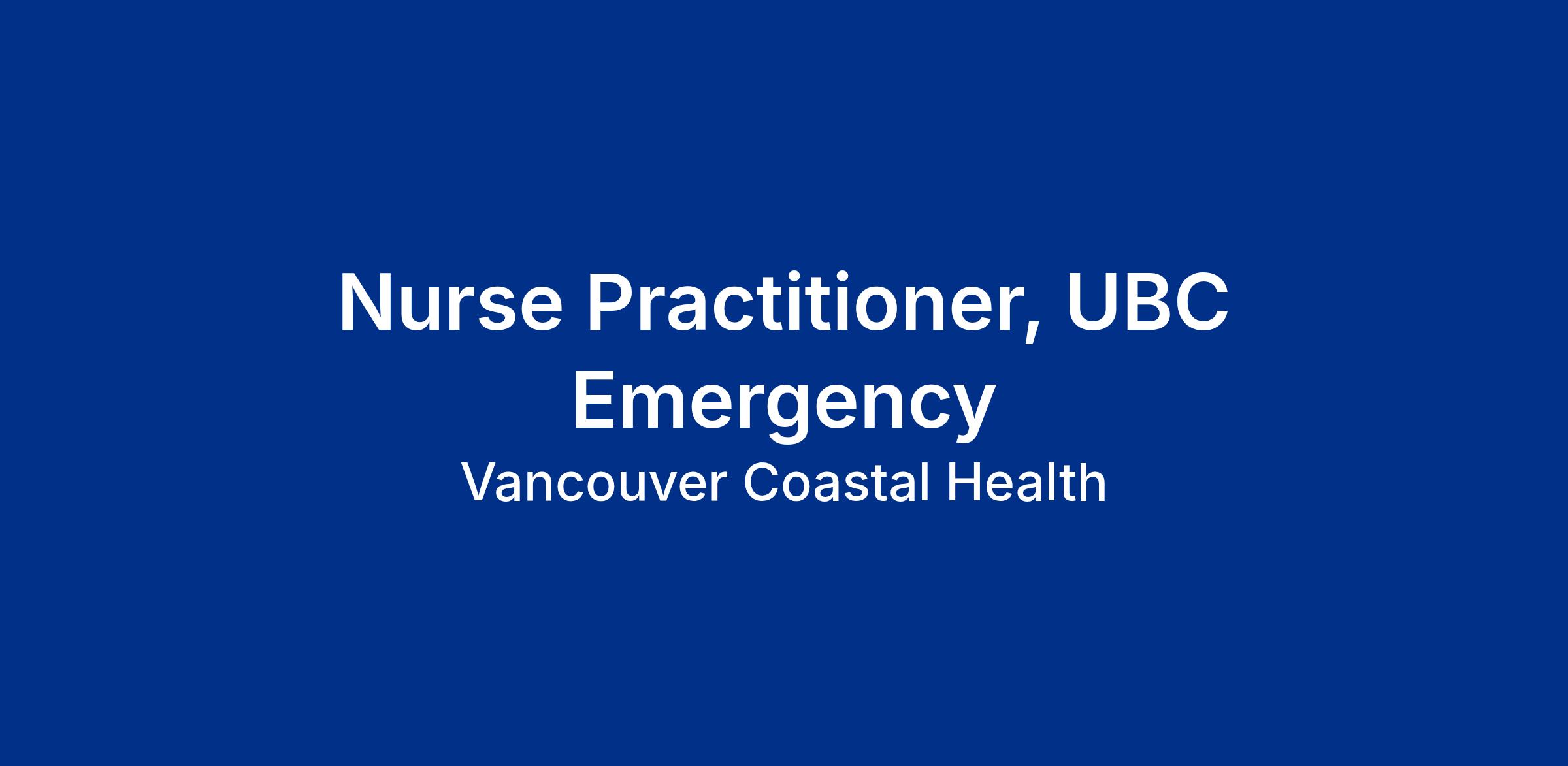 The UBC Emergency Department is seeking motivated and dynamic NPs to provide full scope care to upc 3,4,5 patients. The interdisciplinary team is excited to integrate NPs into their model of care. Successful candidates will be supported to upskill. FTEs are open to negotiation. Come join our growing team of hospital-based Nurse Practitioners!