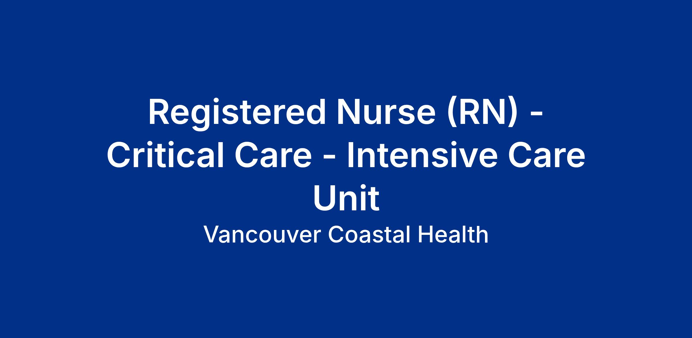 Come work as a Registered Nurse in the Intensive Care Unit with Vancouver Coastal Health (VCH)!