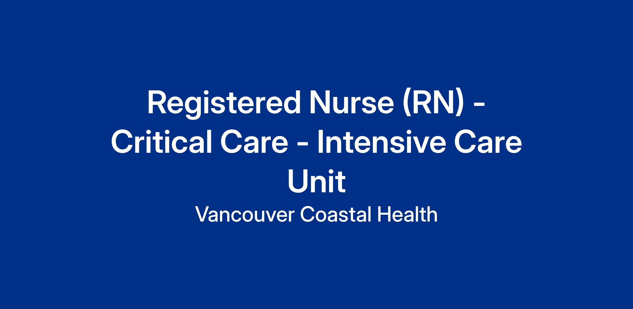 Vancouver Coastal Health (VCH) is looking for Registered Nurses to join the teams in the Intensive Care Unit (ICU) at Richmond Hospital. Apply today to join our team!