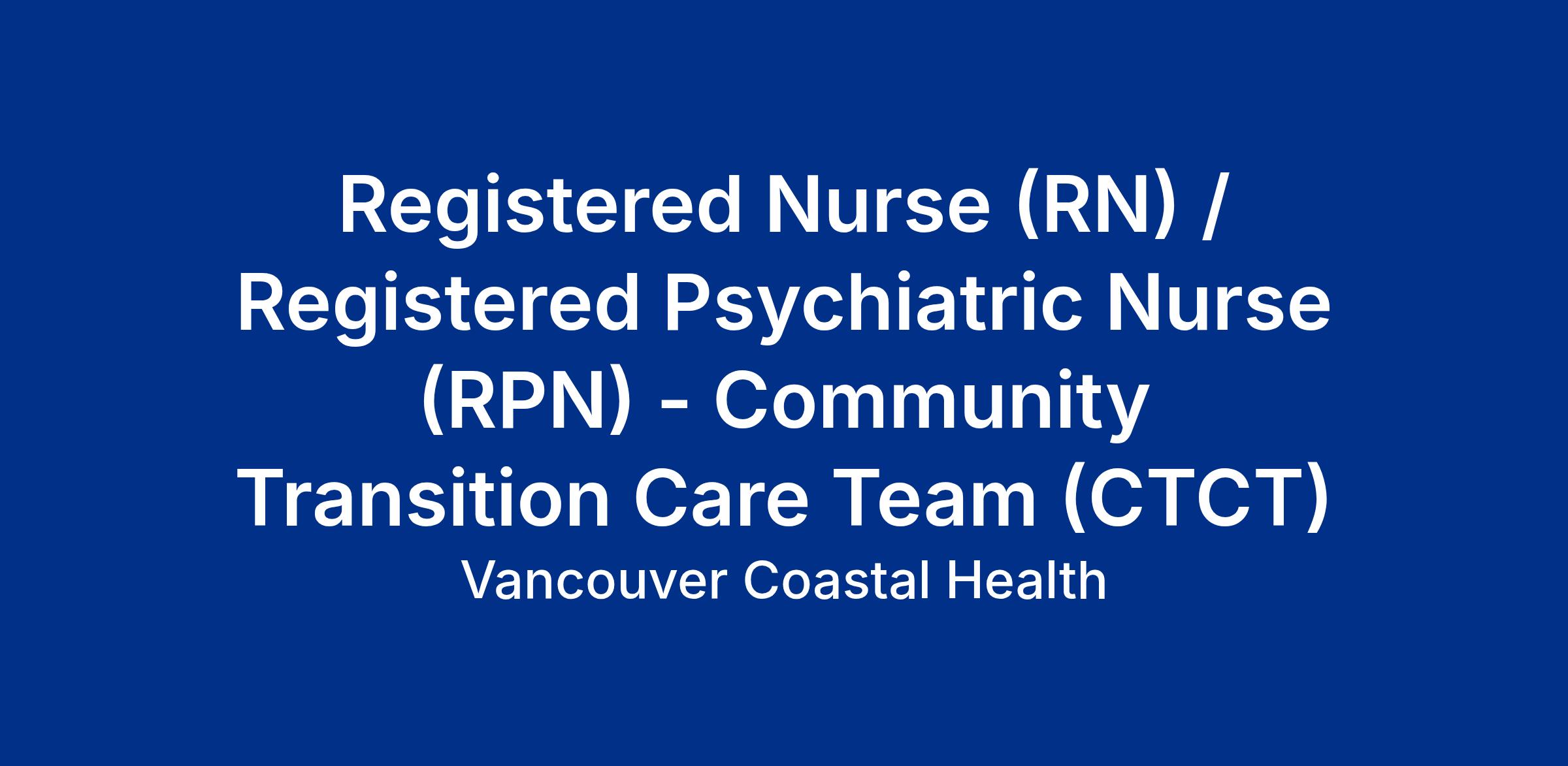Vancouver Coastal Health is looking for a Registered Nurse (RN) or Registered Psychiatric Nurse (RPN), to join the Community Transition Care Team in Vancouver, BC. Apply today to join our team!