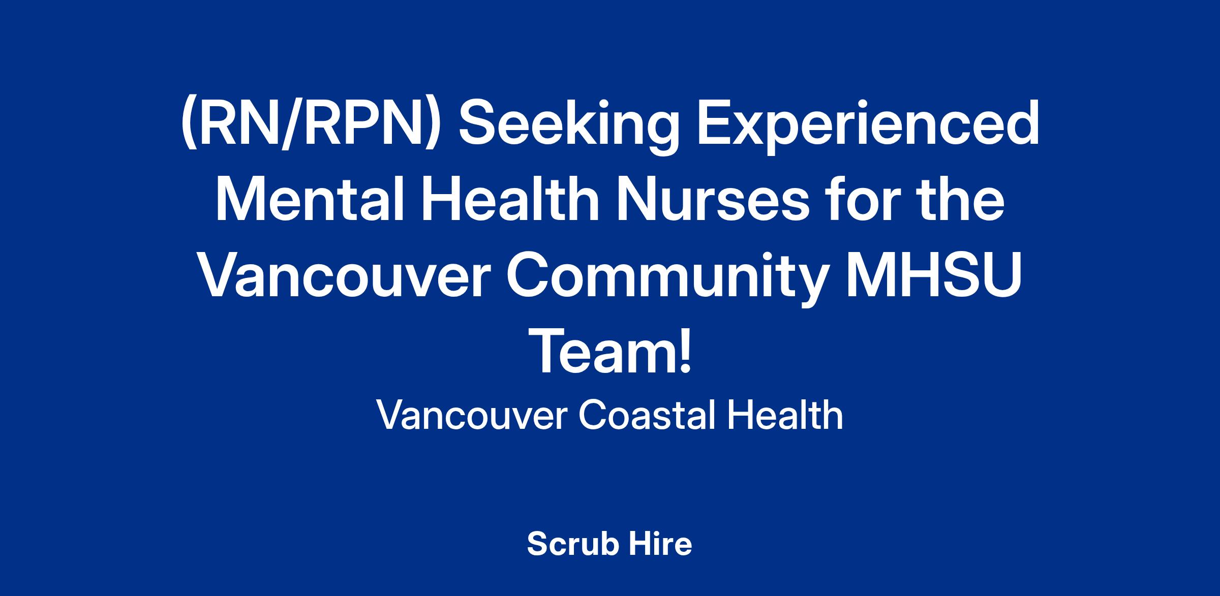 Vancouver Coastal Health is hiring Mental Health and Substance Use Nurses (RN/RPN) into a variety of neighbourhood sites within the Vancouver Community Mental Health and Substance Use (MHSU) team. Apply now to learn more about VCH MHSU Nursing opportunities - Full-Time, Part-Time, and/or Casual! For more information about working as a Mental Health Nurse with Vancouver Coastal Health, check out this Staff Spotlight!